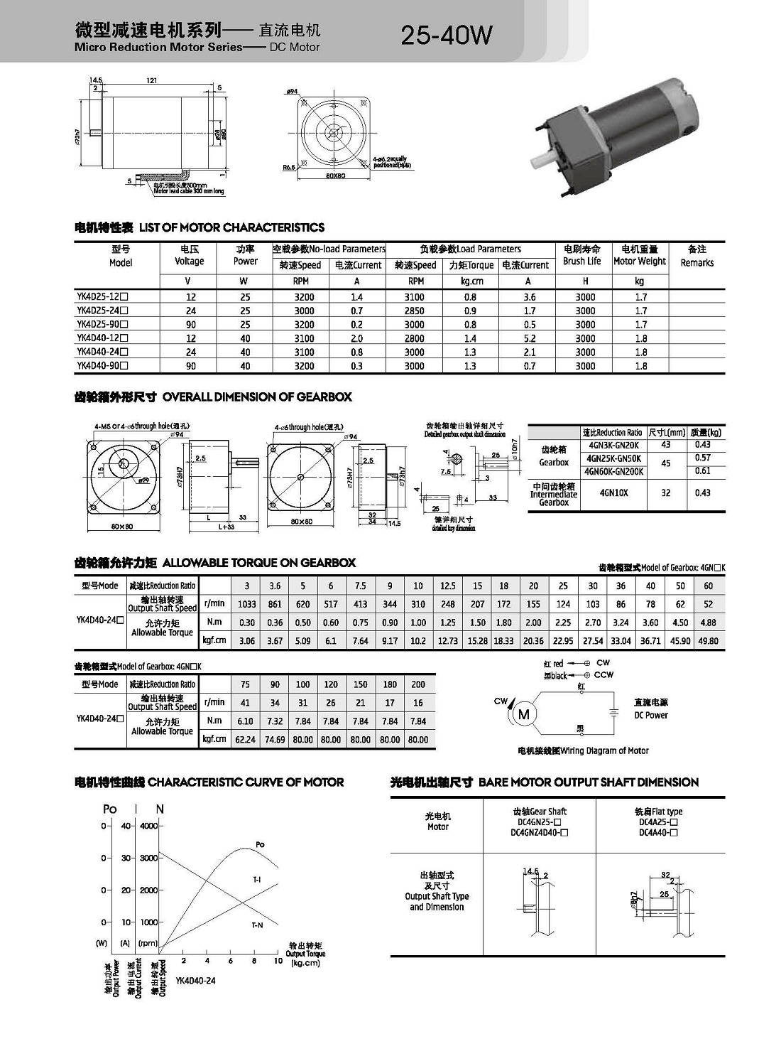 微型直流有刷減速電機(jī)系列-直流電機(jī)25W-40W